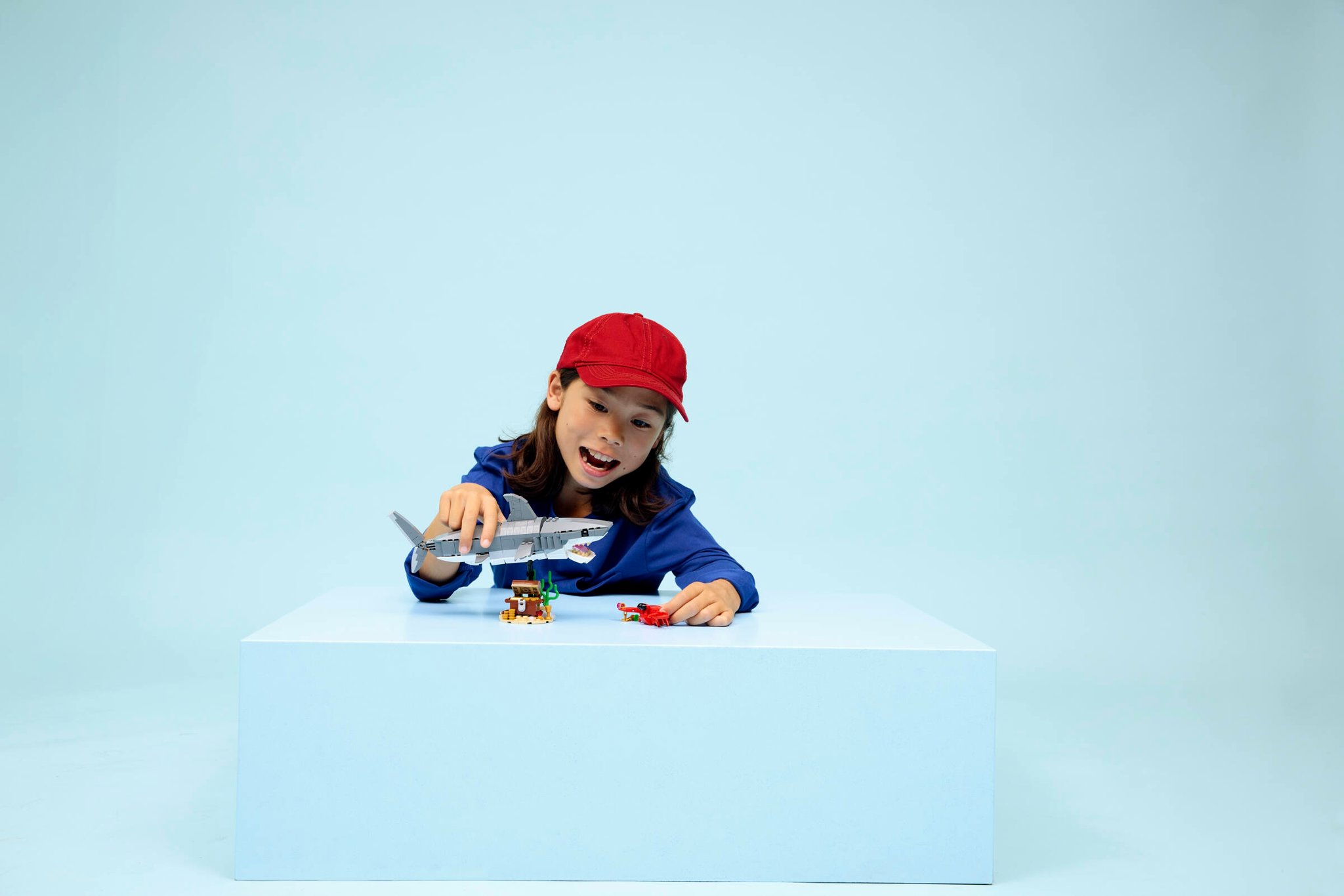 Possono scegliere di costruire uno squalo giocattolo snodabile che può essere esposto su un supporto con uno scrigno del tesoro e un granchio. Possono quindi ricostruirlo in una rana pescatrice su un supporto con piante marine o in una manta giocattolo snodabile su un supporto con una conchiglia. Una volta terminati la costruzione e il gioco, ogni modello può essere esposto come decorazione per la stanza su uno scaffale o una scrivania.