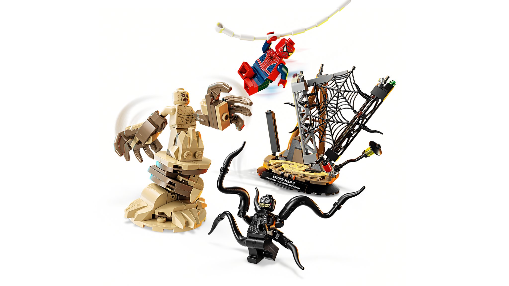 - 3 MINIFIGURE LEGO® ǀ MARVEL: questo set da costruzione contiene 3 minifigure che combattono in un cantiere: Spider-Man, Venom con tentacoli e Sandman con una base in mattoncini e un braccio sovradimensionato